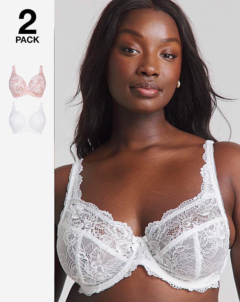 2Pack Ella Lace Full Cup Wired Bras – Blush/White – £18.00 – Ref 6017