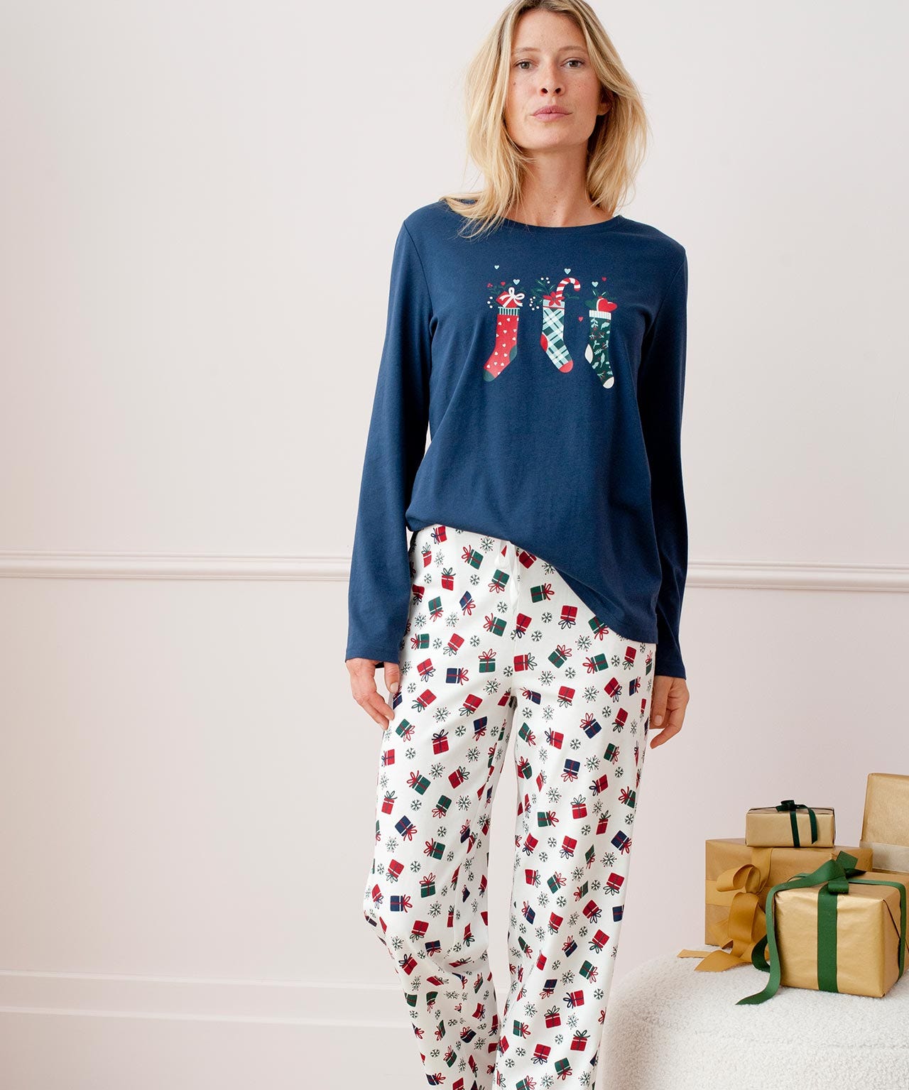 Damart Long Sleeve: Off White Print Long Sleeve Christmas Pyjamas . Christmas Eve ready pyjamas in a selection of festive designs, made from pure cotton jersey. Get ready for the festive season with our Christmas pyjamas.